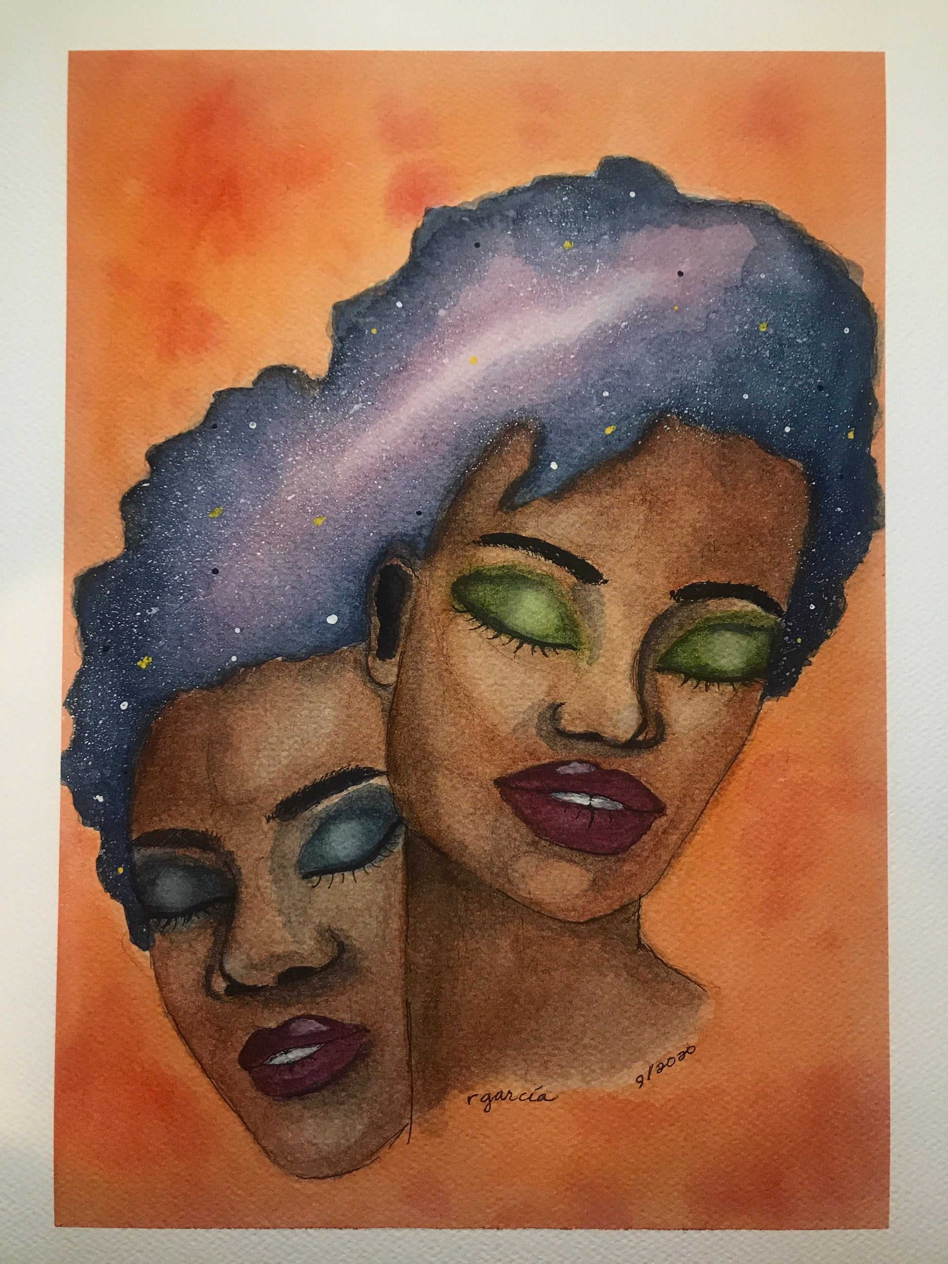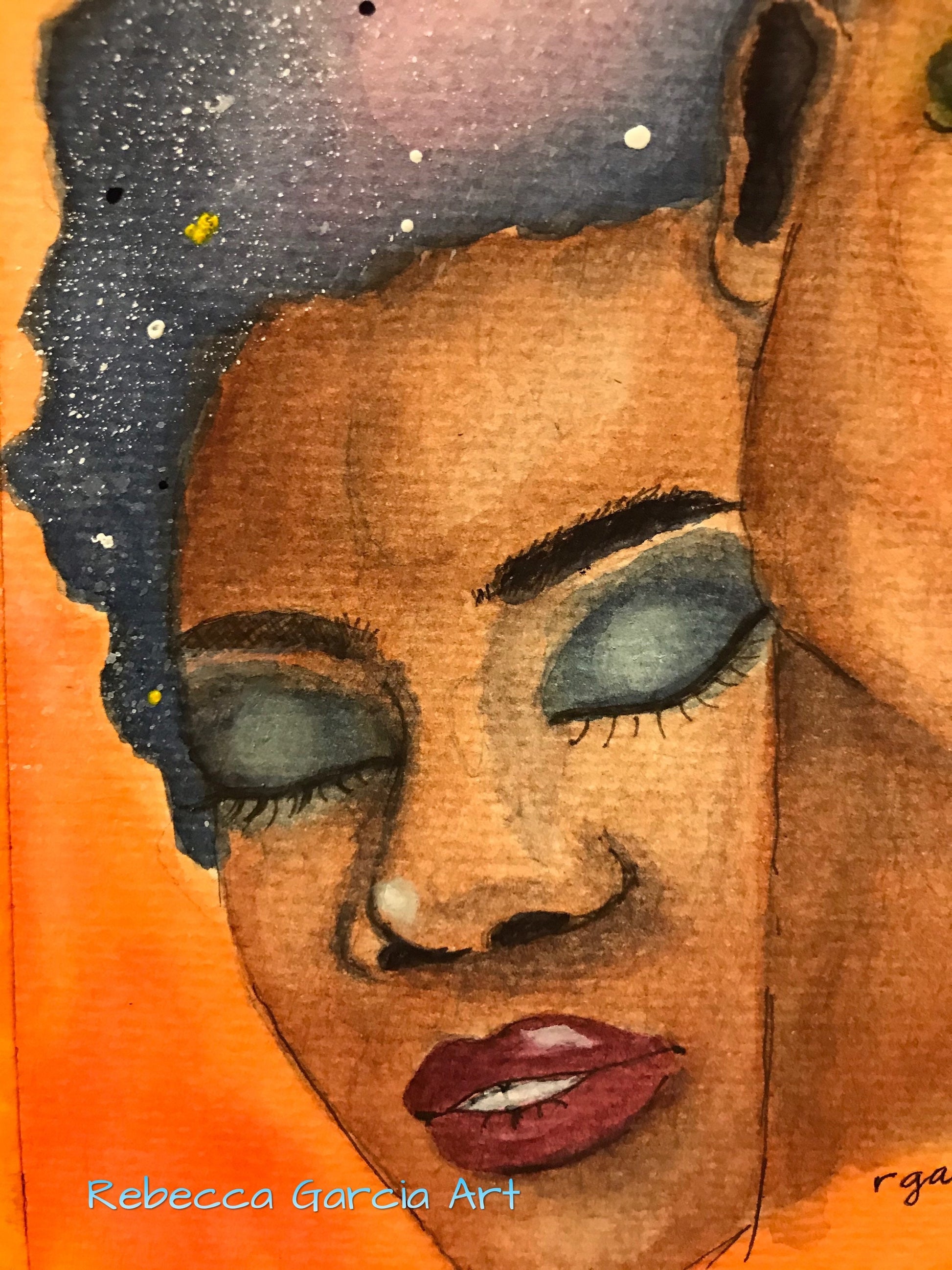 When I started my watercolor journey, I wondered how I might bring my experience of being biracial into my art. I speak about it in my music and in my poetry, but was still much a beginner in painting. As I pondered this, I also dove into landscapes, portraits, and galaxies...leading to the idea of natural hair as a world of its own, encompassing the beauty and infinite dimensions as reflected in those of us who possess the gift of natural, unruly, oft embattled curls. And from there I eventually created my Afro Galaxy series! ❤️
