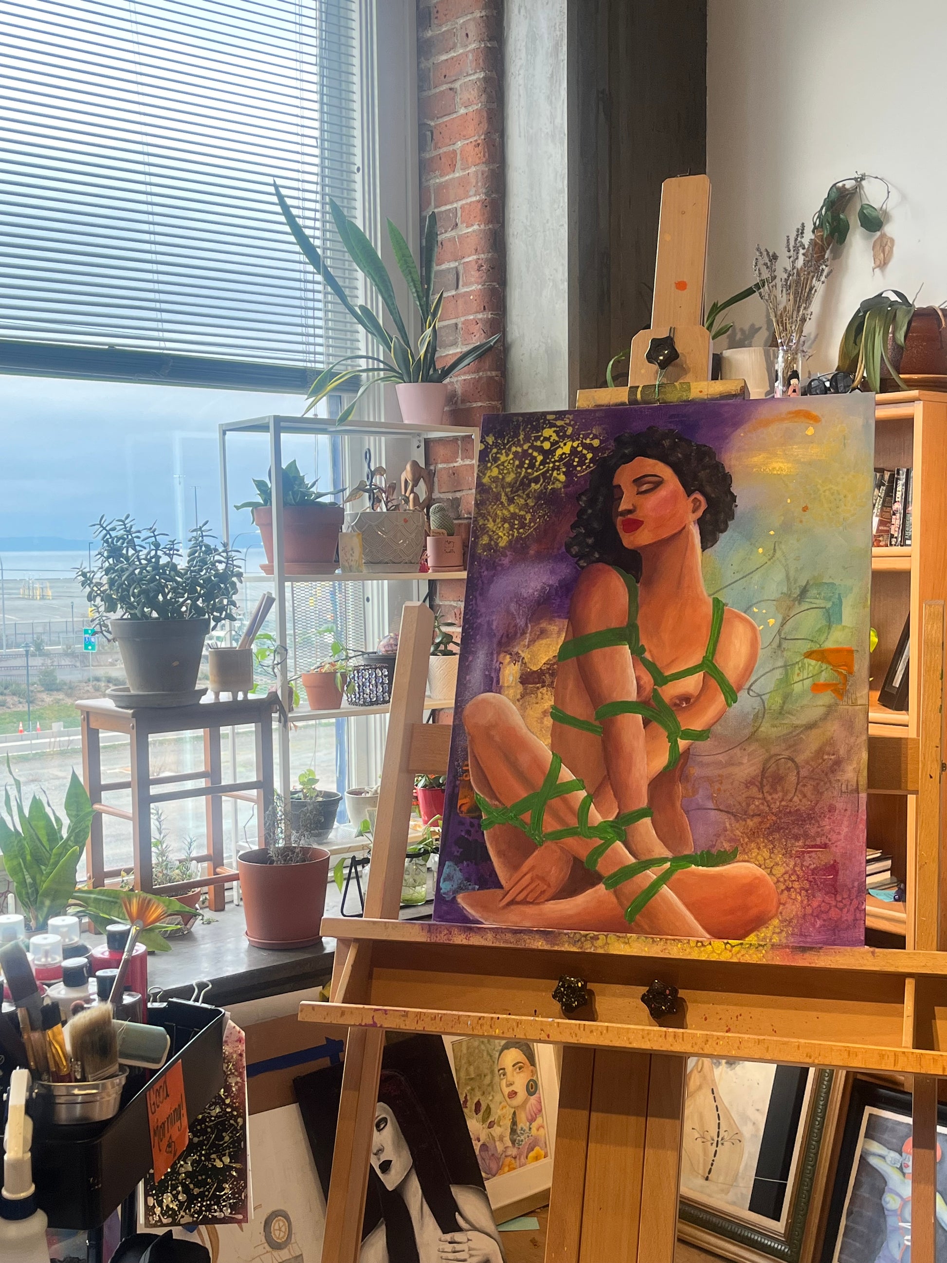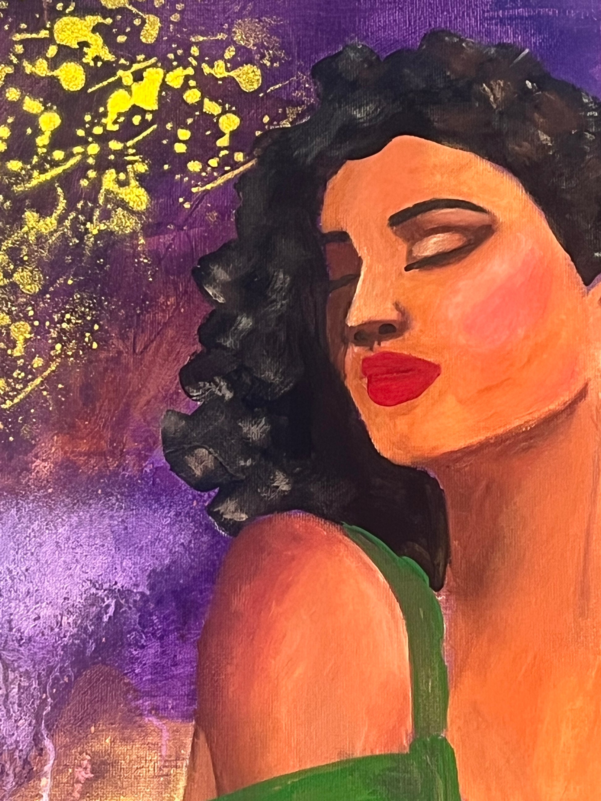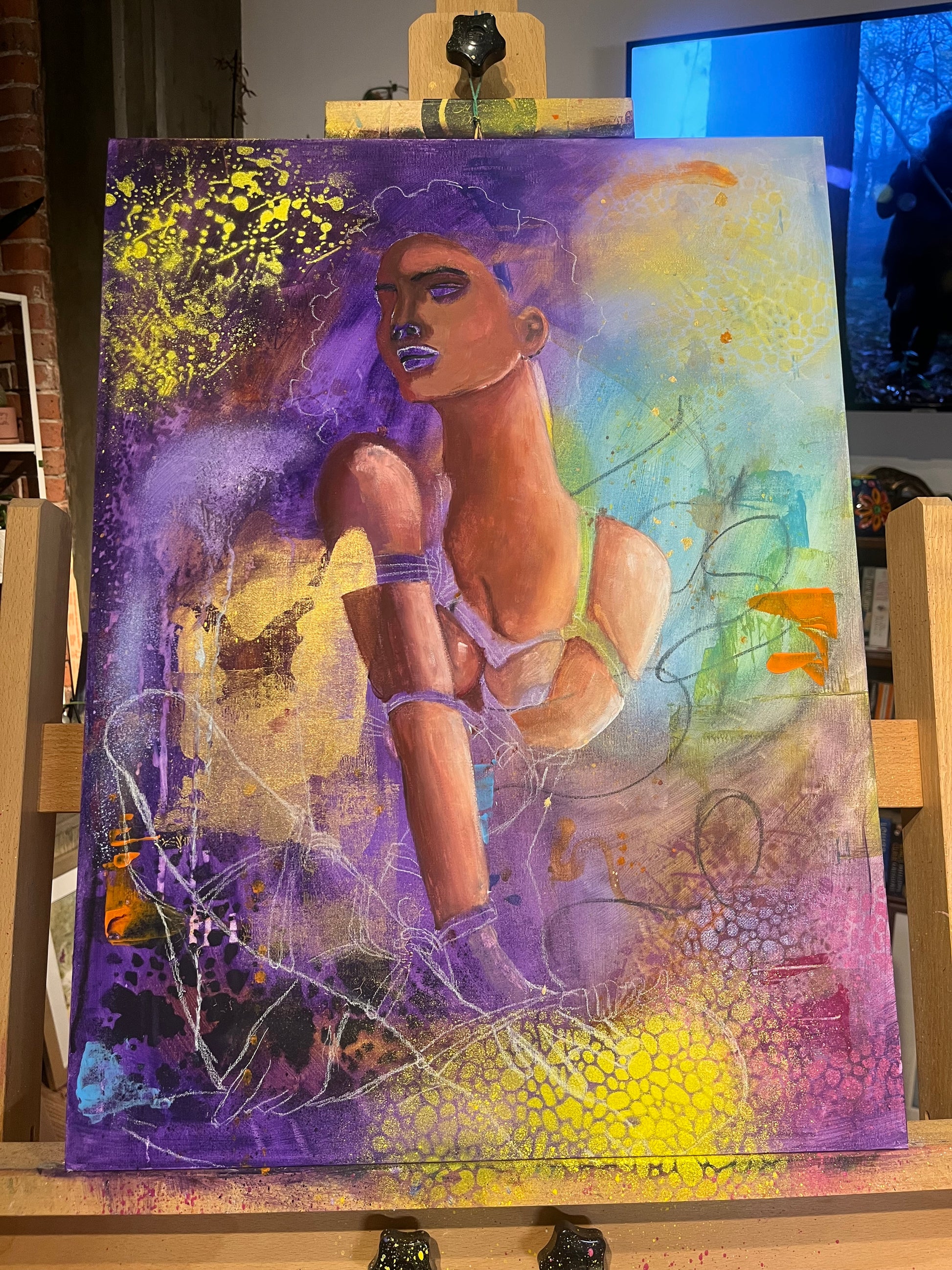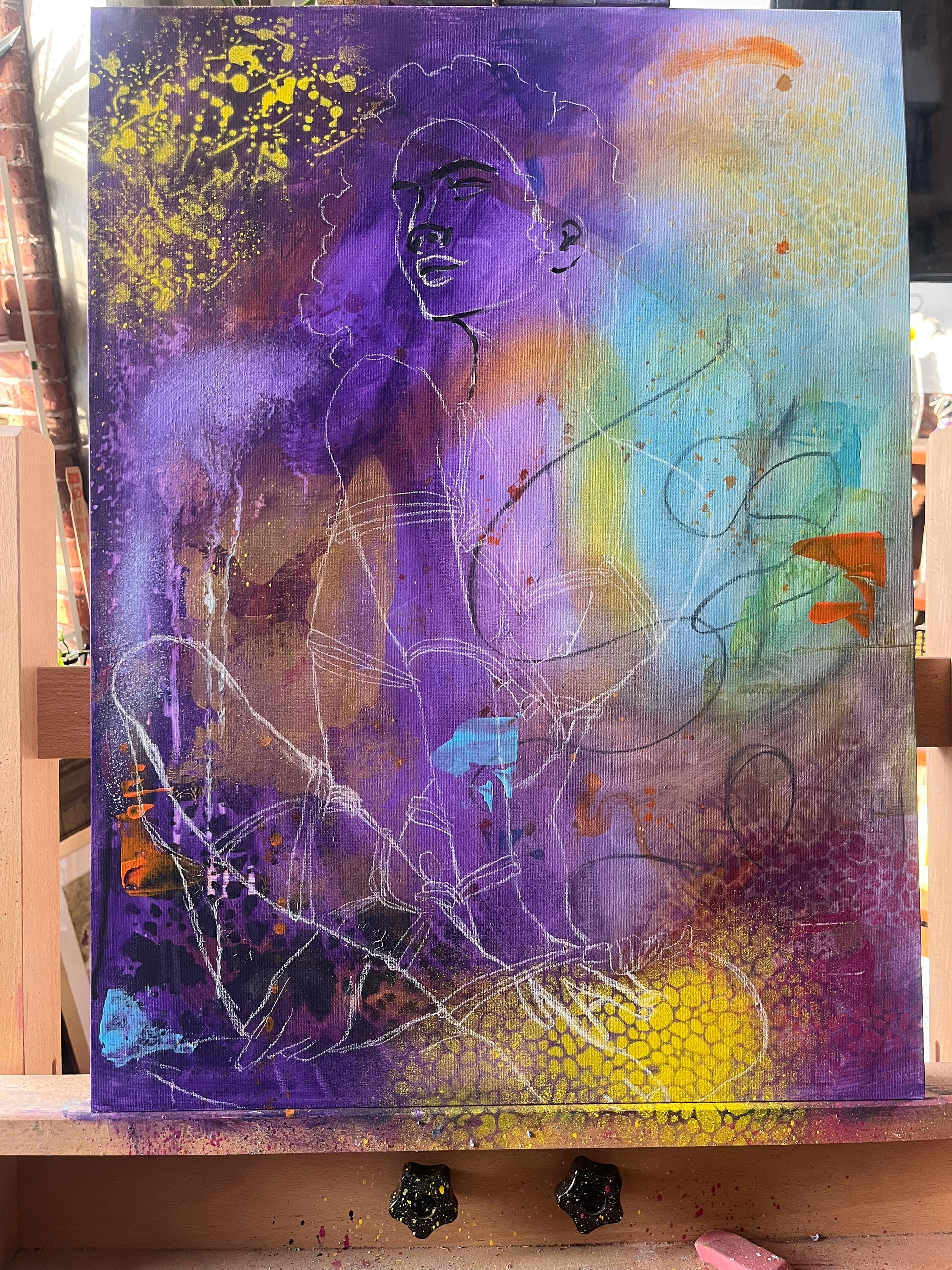 I created this piece on a canvas board using acrylic paint, charcoal, spray paint, and acrylic ink.