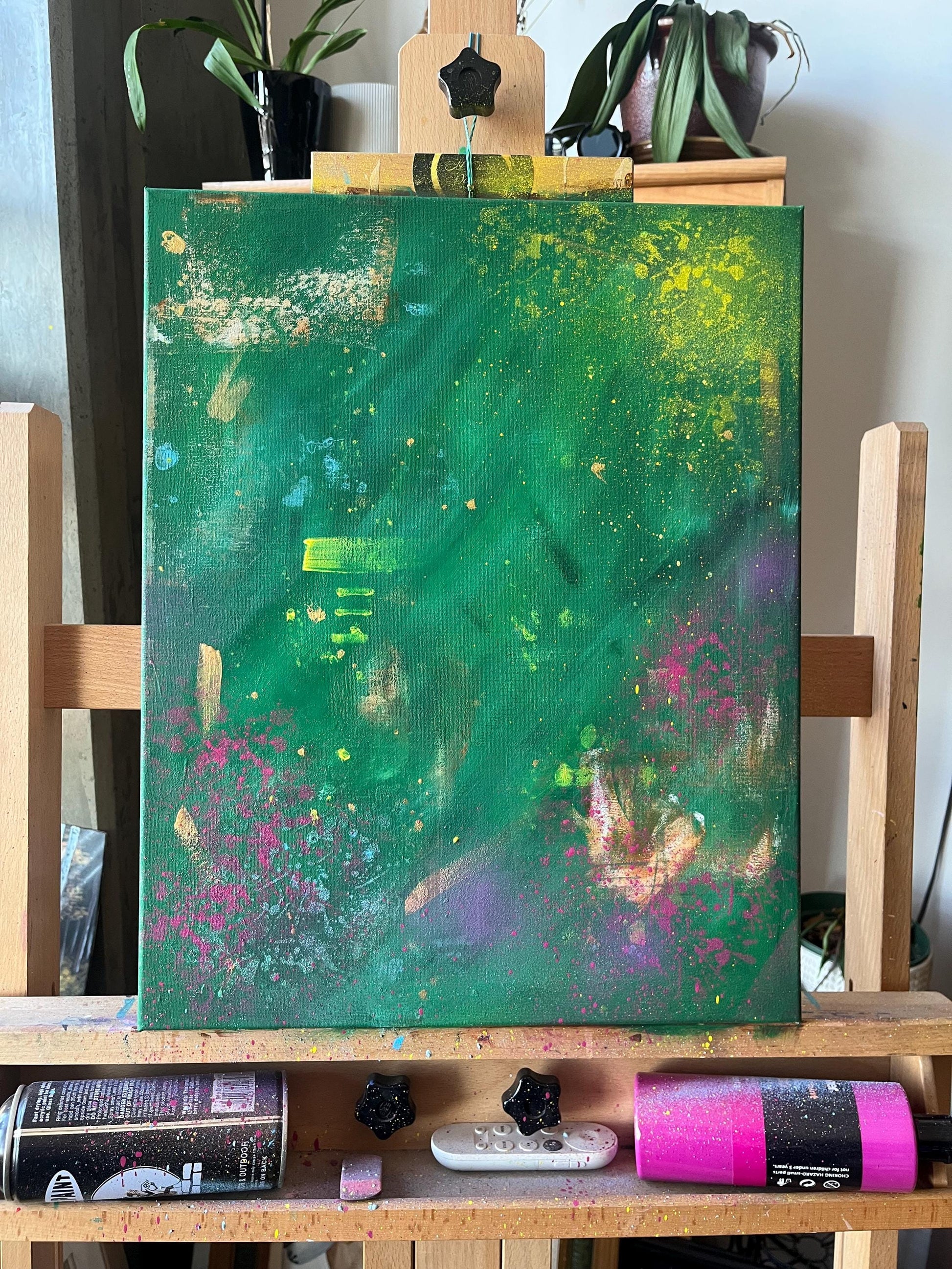 Acrylic and spray paint on stretched canvas. 2025.