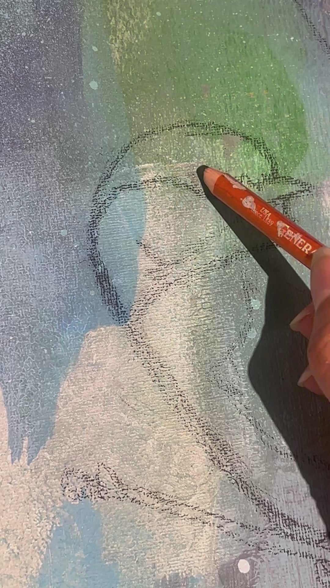 This triptych was such a lovely exercise in both allowing myself to play and be free on the canvas, and to bring focus and intention. The background was a freeing time to let loose and play with texture (sand mixed with paint), and tools (palette knife, old credit card, and spray paint).