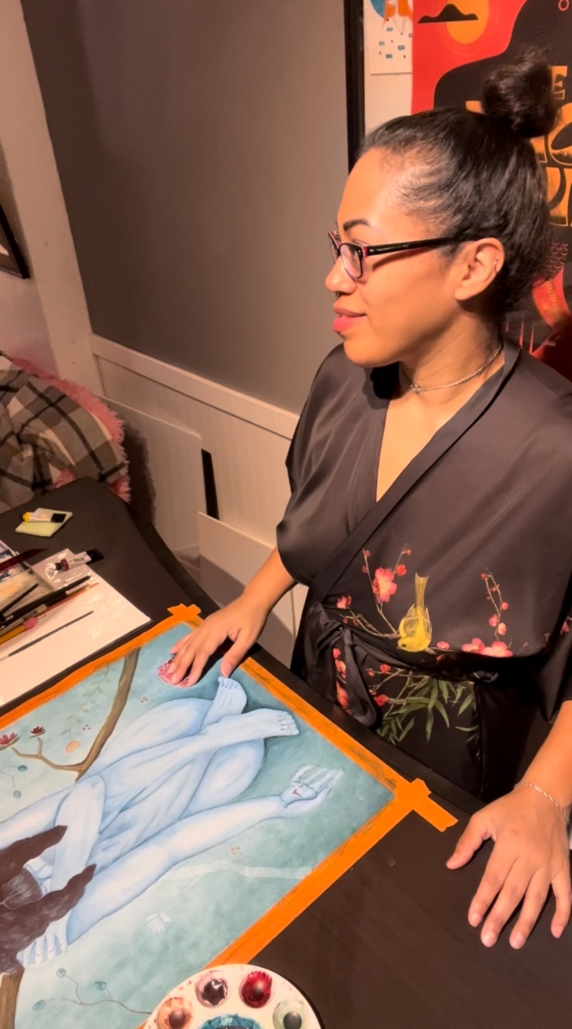 I often find that painting is a great way to release energy, to channel it in a constructive way. In this one, I was processing some heavy emotions and it helped me come out on the other side, lighter, freer. It remains a favorite, both thematically and because it represents the healing that can happen, internally and via the process of creating.