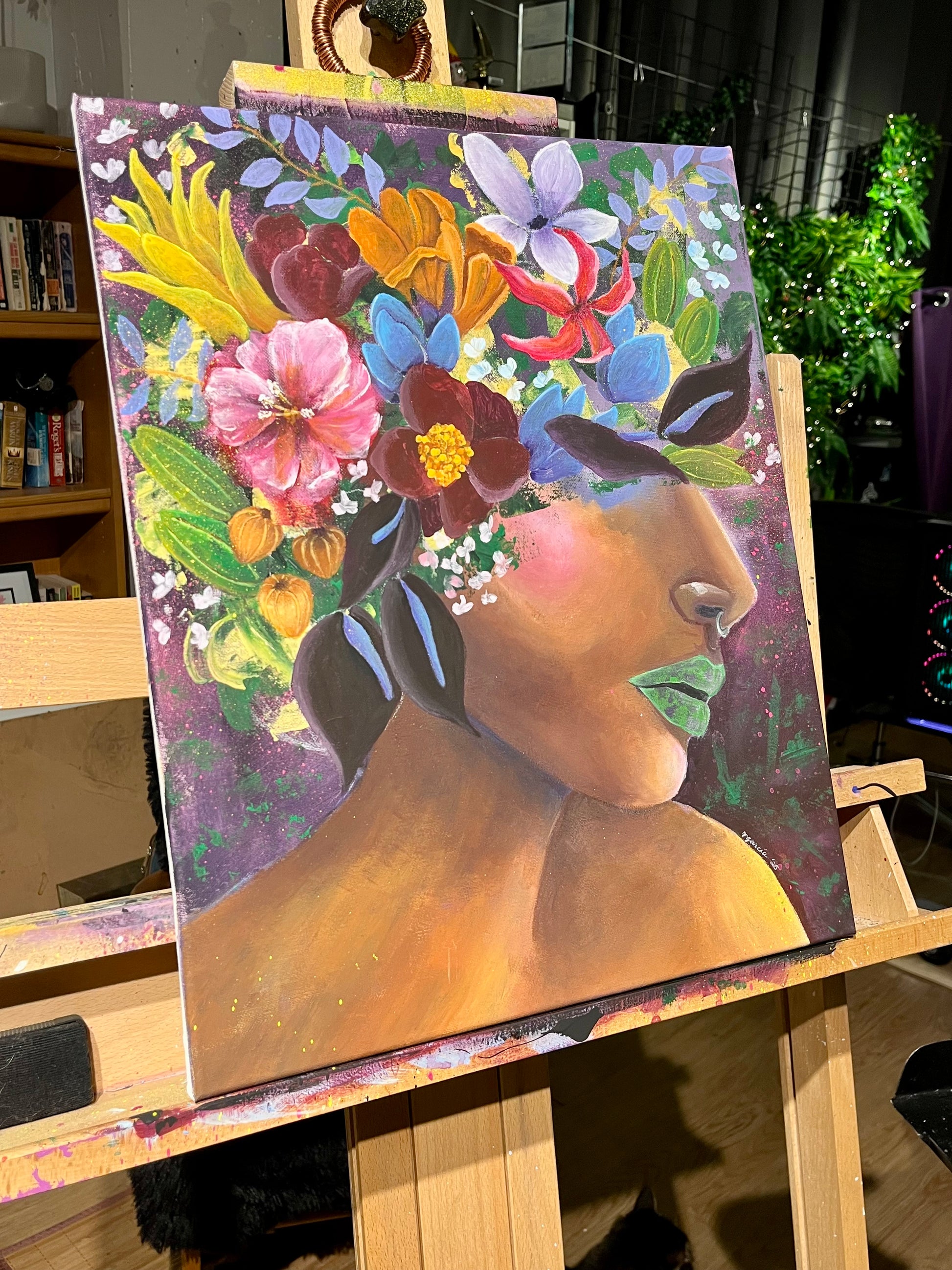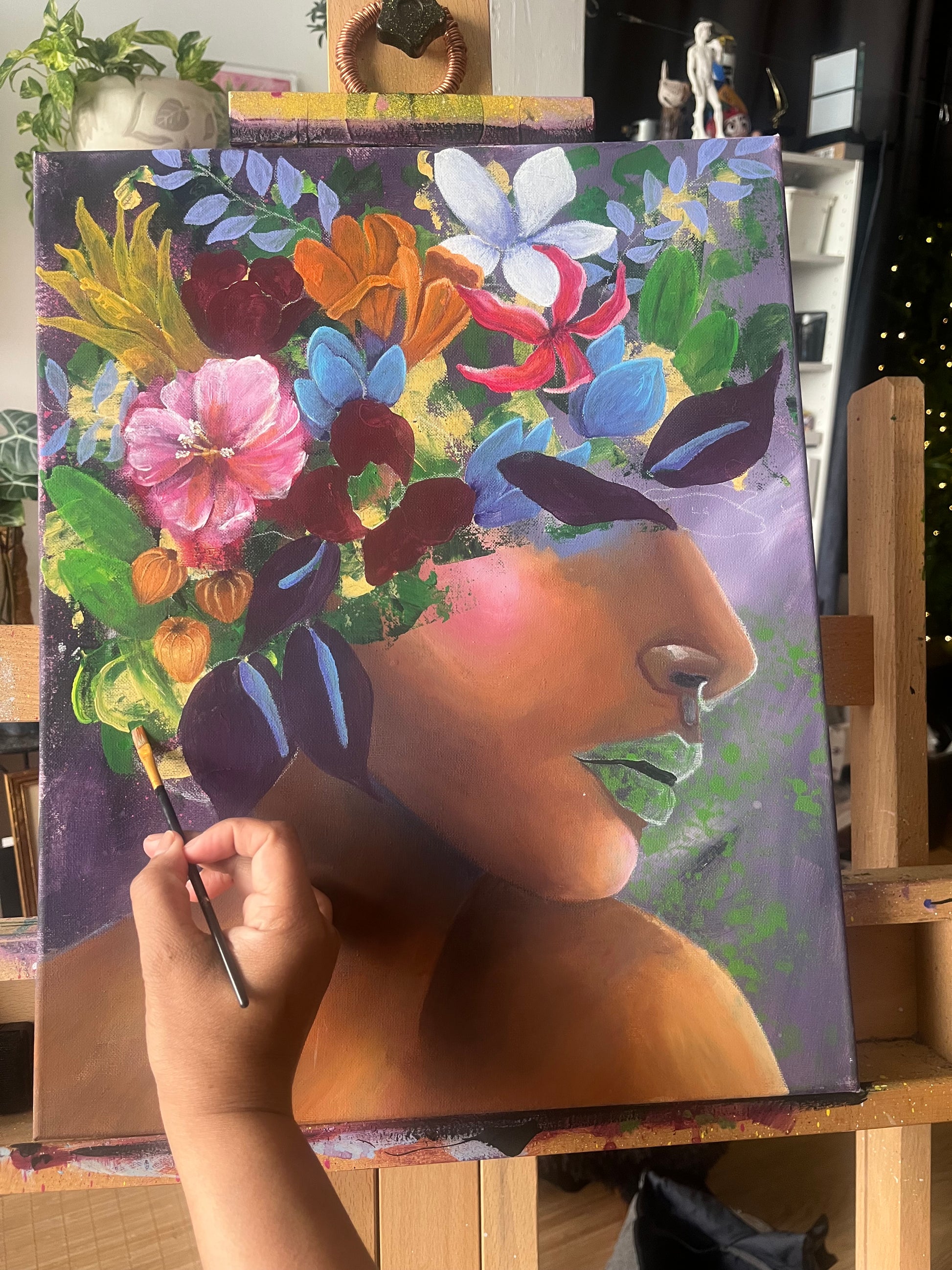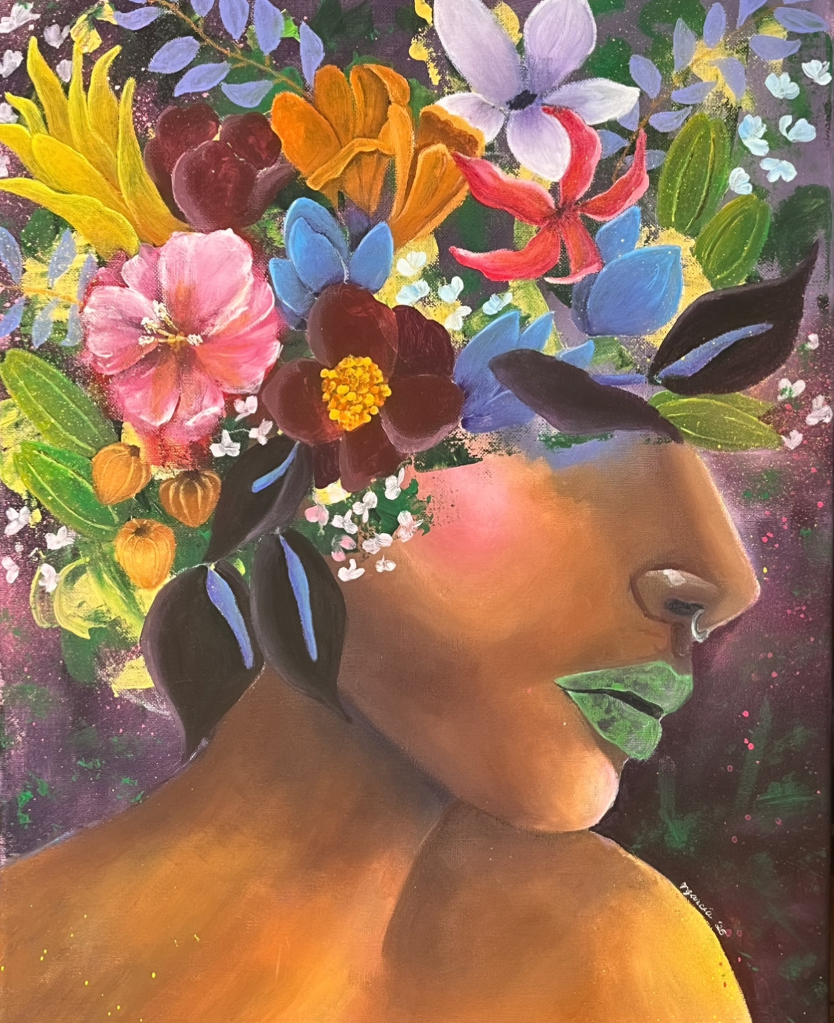 Each petal and every stroke made to create her dusky skin was a practice in meditation. The call of spring was strong this year and it was lovely to immerse myself in lure of its beauty, bringing to life the colors and textures and riotous vibrancy. Feminine energy and florals are two of my main passions and I get so much joy when I get to explore these themes on the canvas. What I love even more is that once a painting leaves my hand, the story becomes that of the viewer and takes new life and complexity. What does she say to you?