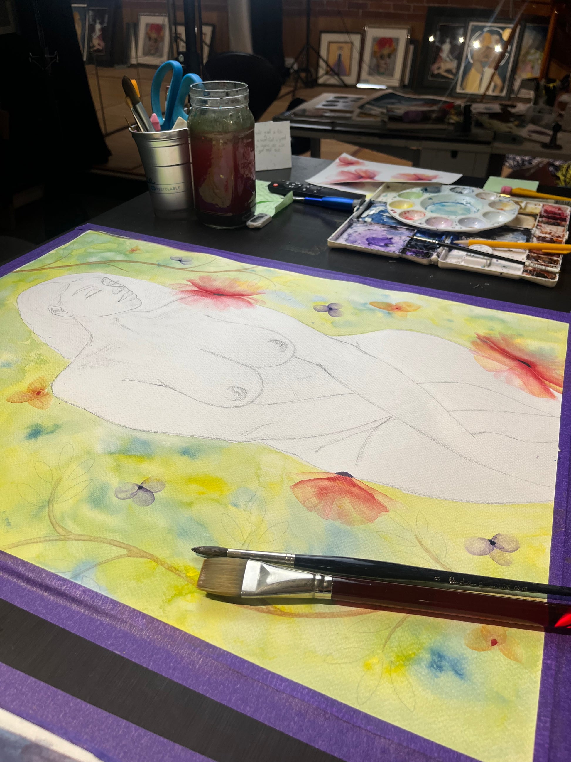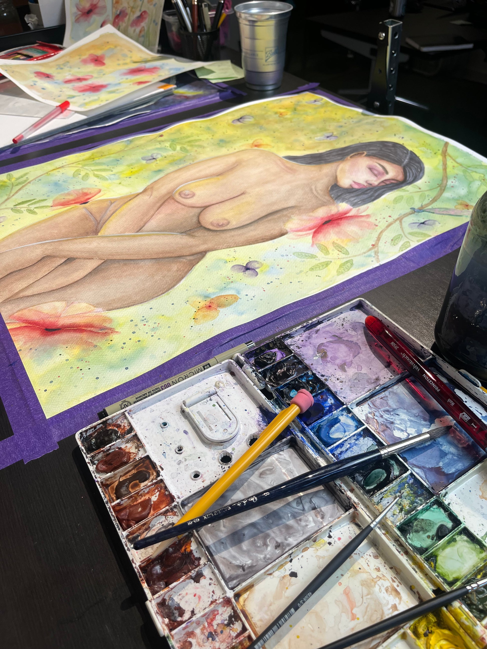 Daniel Smith watercolor painting on watercolor paper, created in 2024.