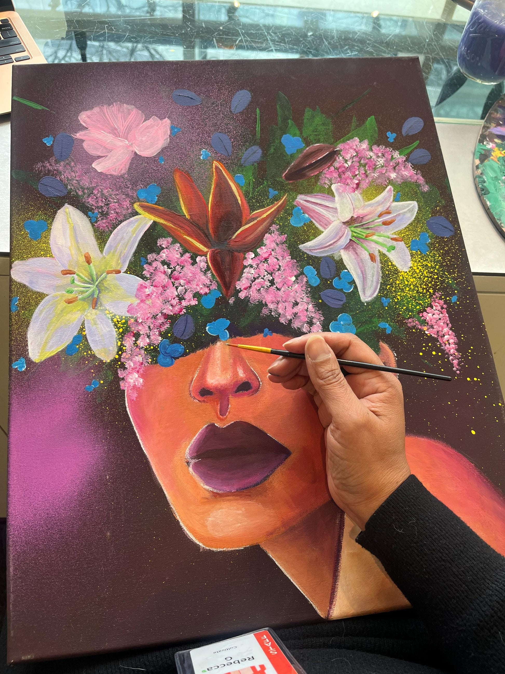 Gray skies and rainy days had me yearning for the riot of color and warmth of spring. It's also been an era of floral art for me, as well as a wonderful dive into acrylic paint. It has been such a joy to work in a new medium, which, as with watercolor, offers it's own challenges and pleasures and visions. Rite of Spring is a love letter to my favorite time of year: where nature's palette is vibrant, the sun has come out of hiding, and there are still occasional rainy days which are perfect for wrapping up in a blanket and reading a book.