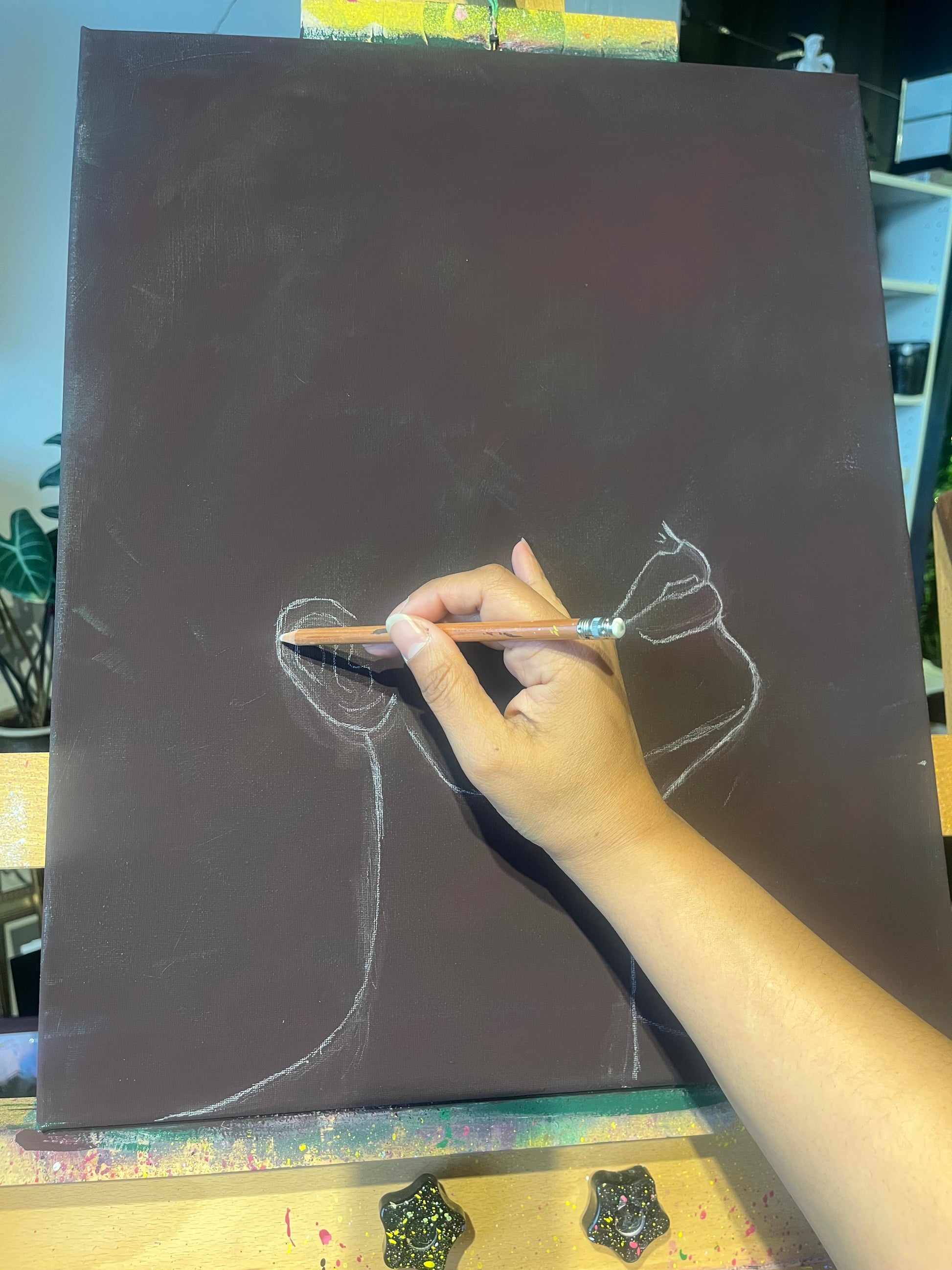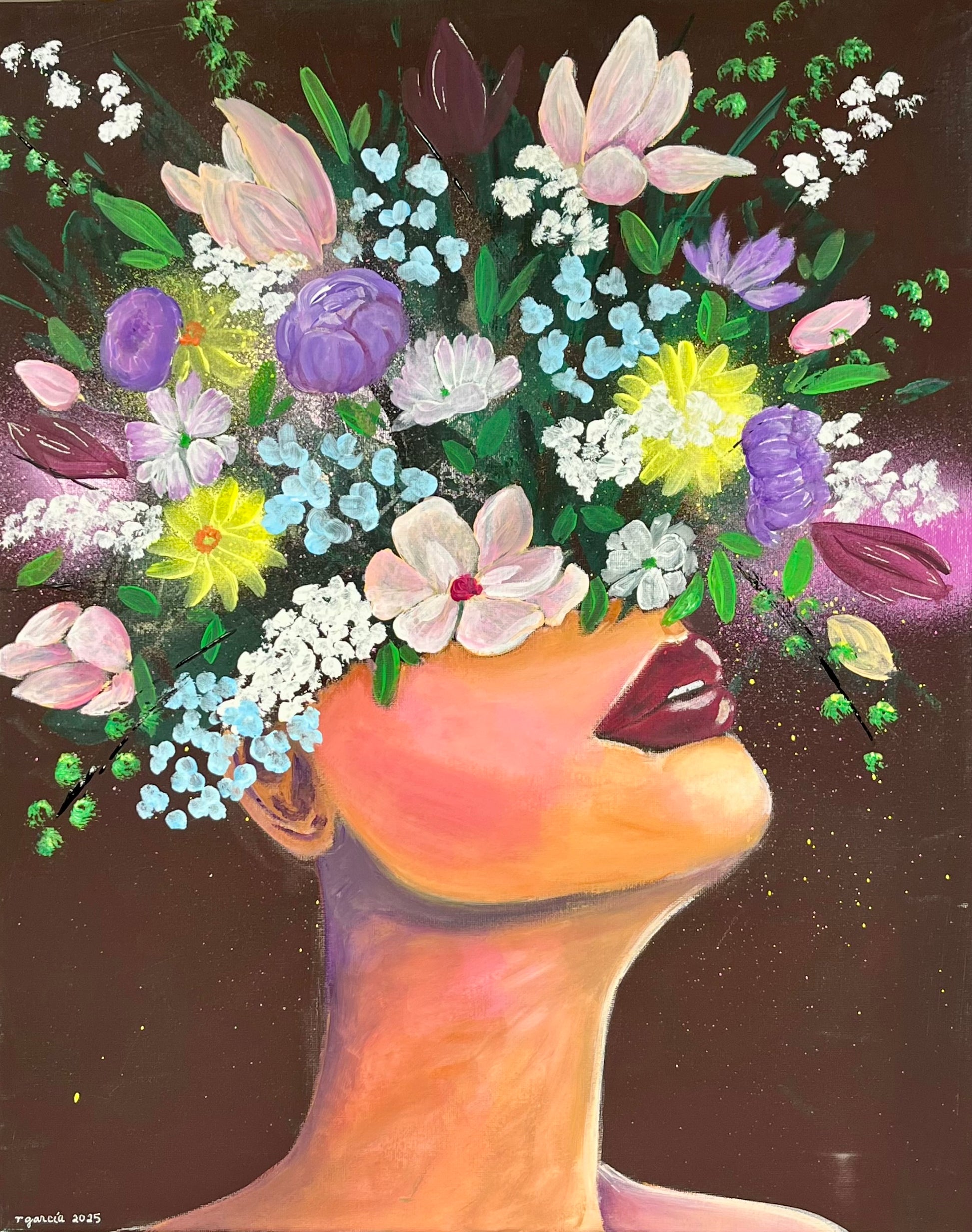 Acrylic and spray paint on stretched canvas. 2025