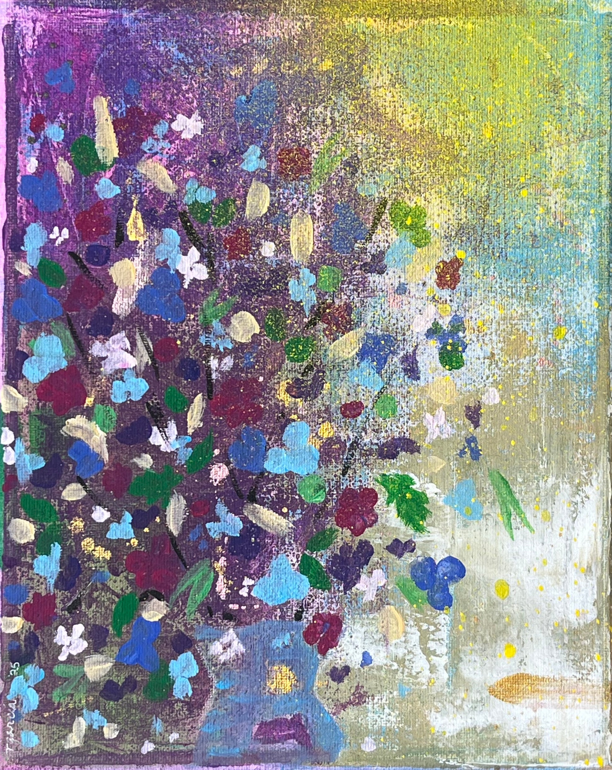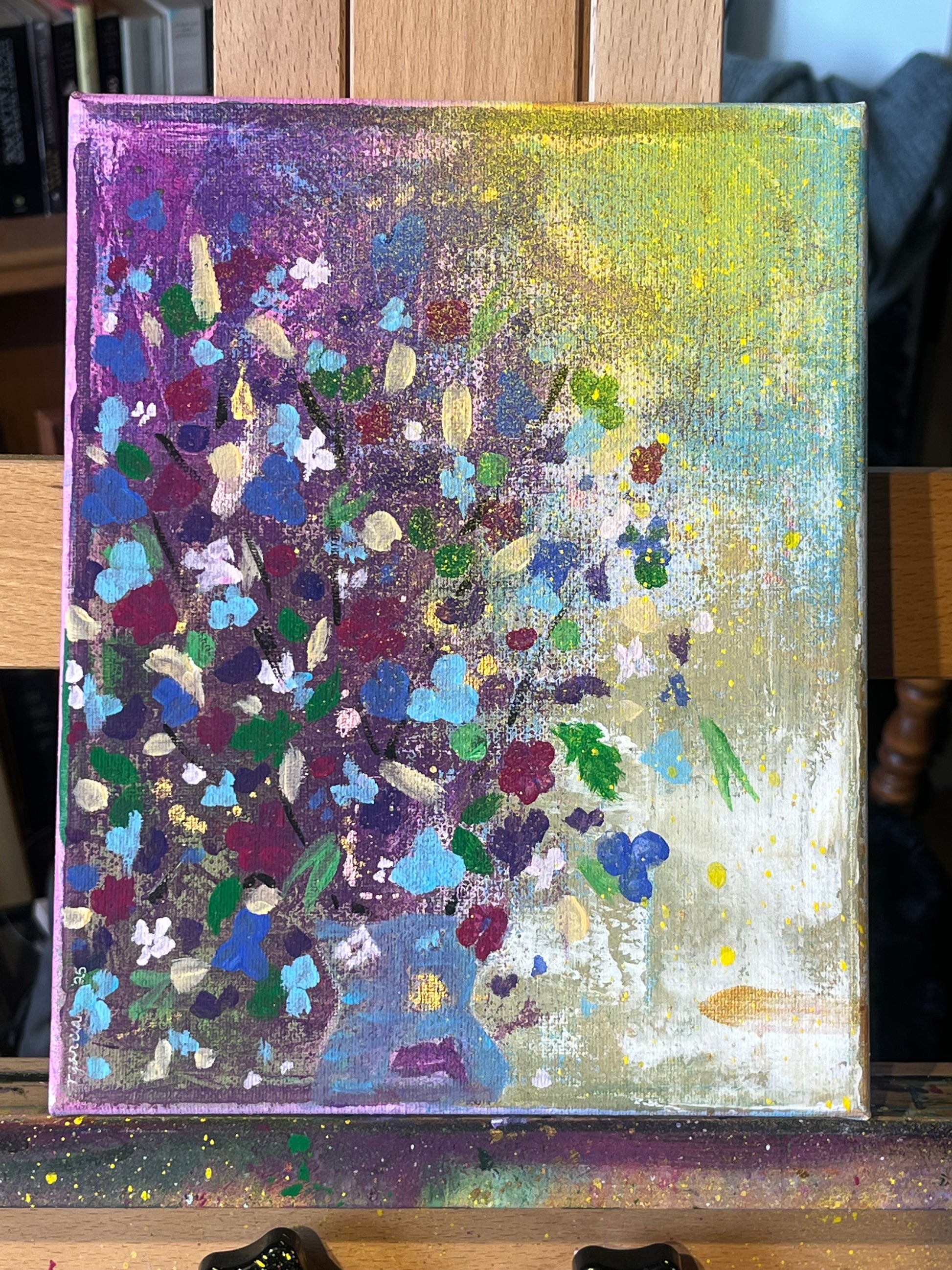 I painted this while yearning for spring to make an appearance - musings of blooms in the soft sun or dancing in the gentle rain.