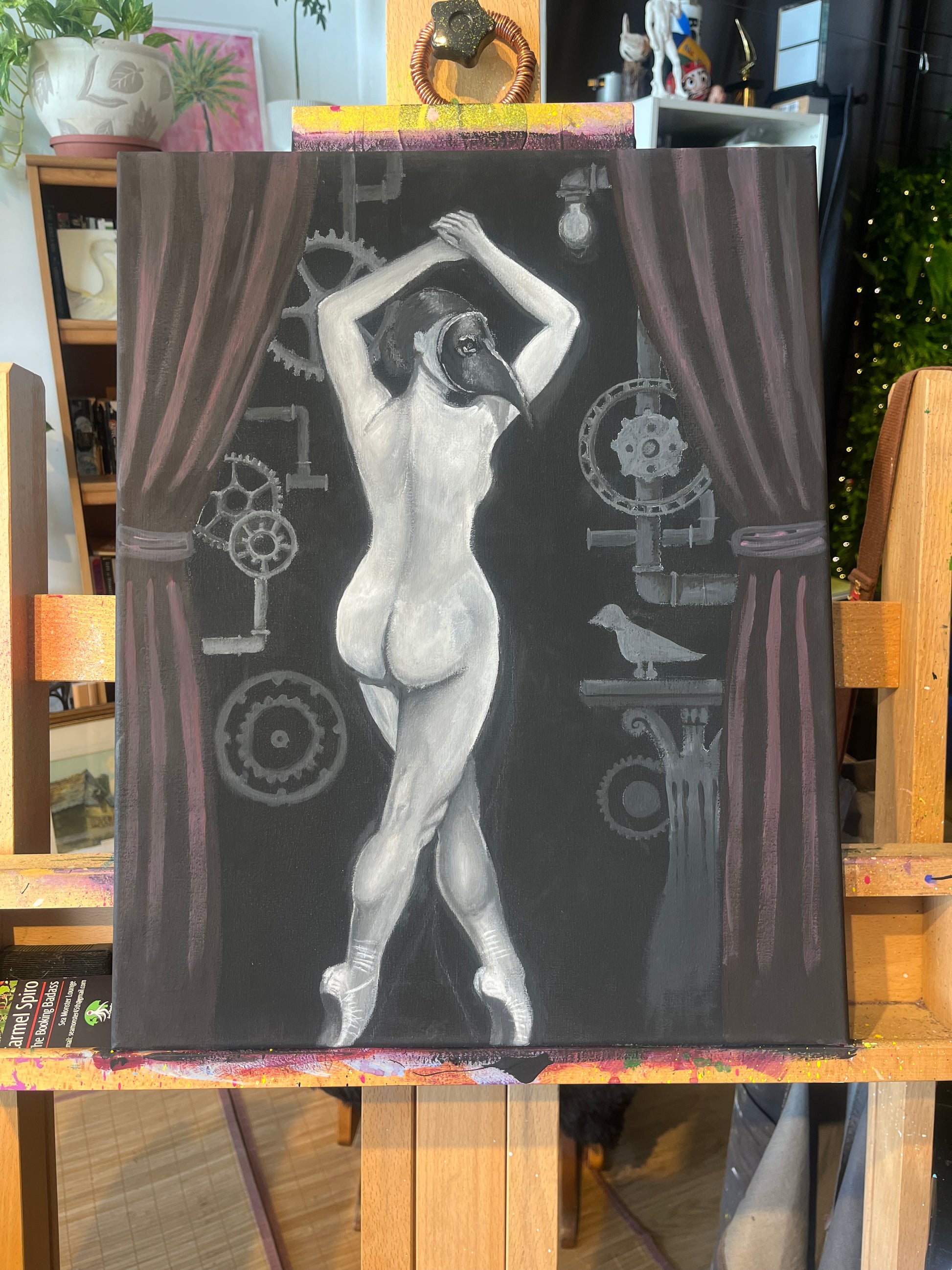 This piece, along with the companion piece, Un Rêve Masqué, found their forever home on June 5, 2025 at my first solo gallery show. As I sit writing this, I am happily contemplating the stage for my next steampunk foray.